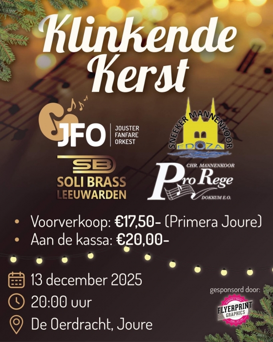 Op zaterdag 13 december a.s. geeft het Sneeker mannenkoor EDOZA samen met mannenkoor Pro Rege uit Dokkum, onder leiding van Jan Hibma, een kerstconcert in de Oerdracht in Joure.